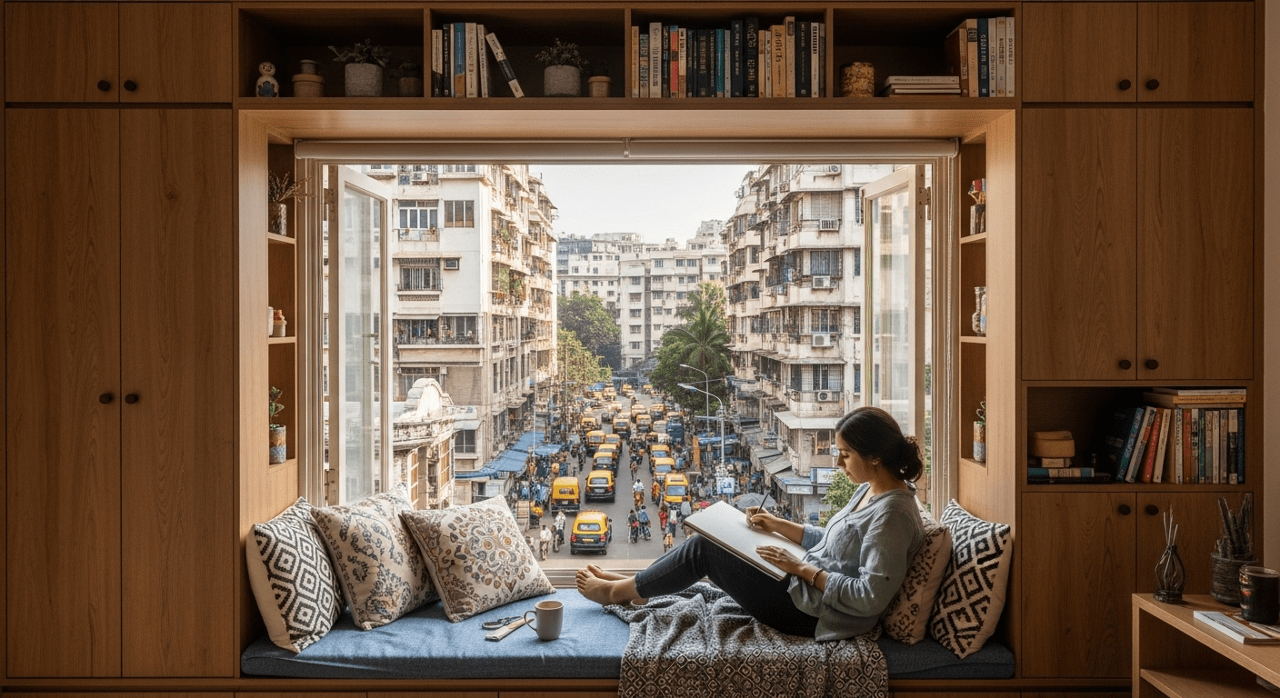 - Client : Ms. Kiara Rao - A graphic designer and illustrator who works from home and required a highly efficient, dual-purpose space for living and creating.