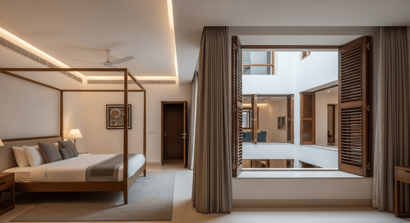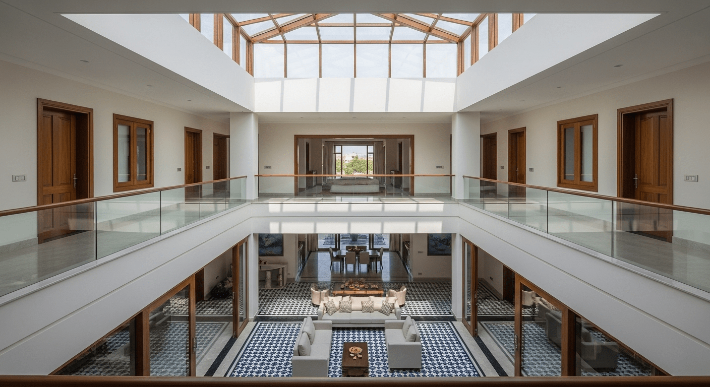 • Client : The Khandelwal Family - A joint family running a successful textile business, requiring a home that respects traditional Vastu principles while feeling contemporary.
